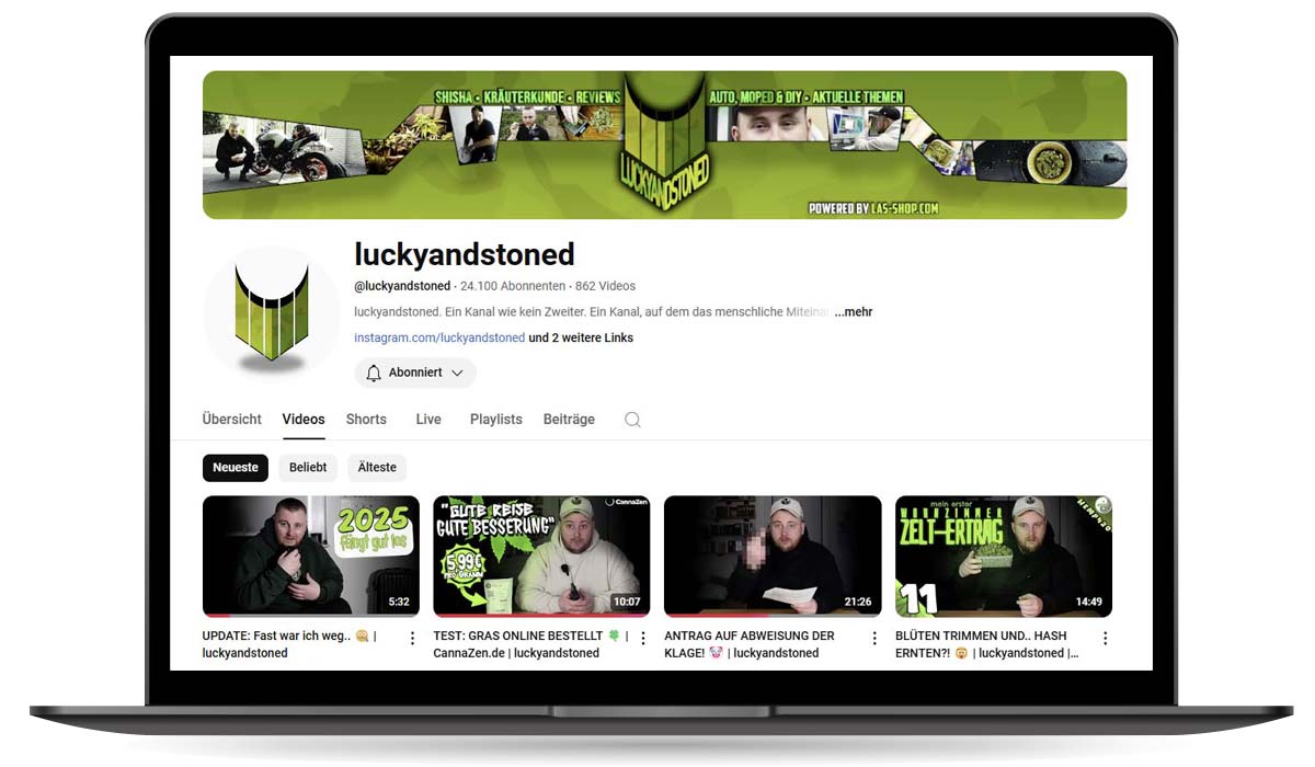 Το Lucky & Stoned είναι ο τÎλειος συνδυασμÏς ψυχαγωγίας, γνÏσης και χιοÏμορ σχετικά με την κάνναβη. Το κανάλι καλÏπτει τα πάντα, απÏ ποικιλίες και καλλιÎργεια μÎχρι θÎματα lifestyle. Χαλαρά vibes και πολÏτιμες πληροφορίες για Ïλους Ïσους είναι παθιασμÎνοι με το πράσινο φυτÏ. Επιστροφή στη λίστα εδÏ: Οι καλÏτεροι Weed YouTubers στη Γερμανία.